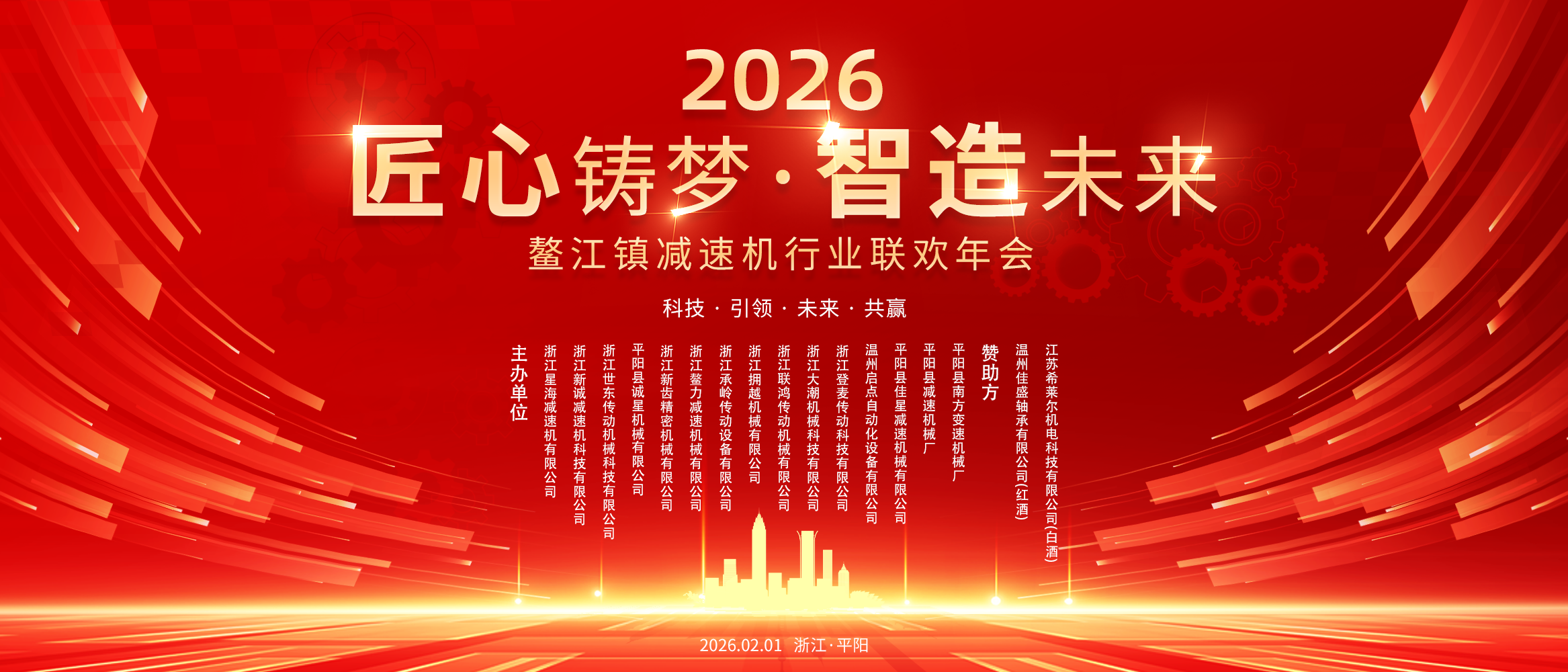 2026年2月1日,浙江平陽,繽江名都宴會中心燈火輝煌,賓朋滿座。一場以“匠心鑄夢·智造未來”與“科技·引領·未來·共贏”為主題的行業盛會——2026年鰲江鎮減速機行業聯歡年會在此隆重舉行。這不僅是一場企業間的歡聚,更是一次凝聚行業力量、共謀智造升級的深度對話。